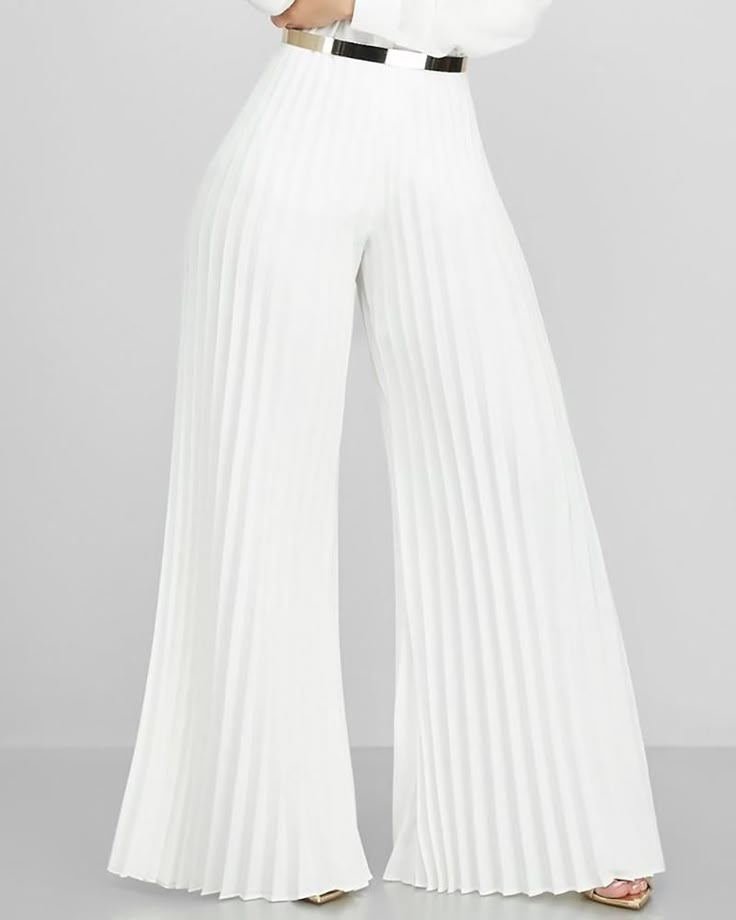 Be the first to review “Solid White pleated wide-leg pants”